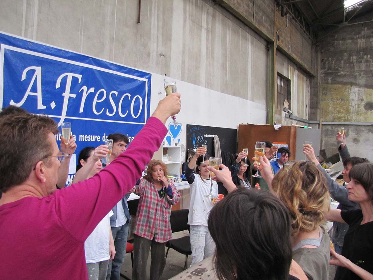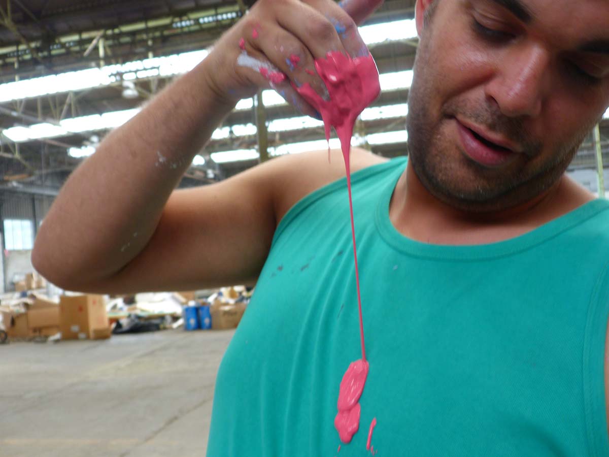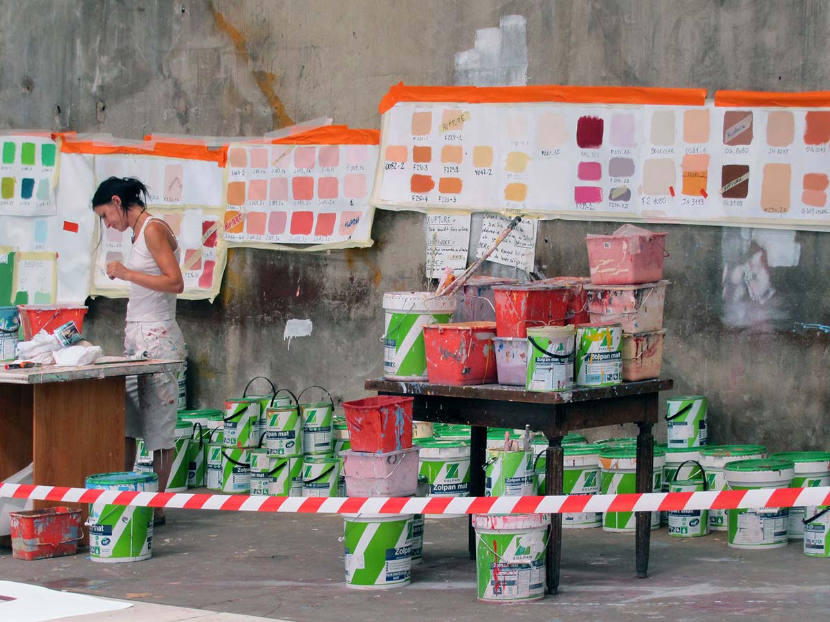 Des tonnes de peinture acrylique, en fûts, en gros pots, en petits, à mélanger selon appétit !
