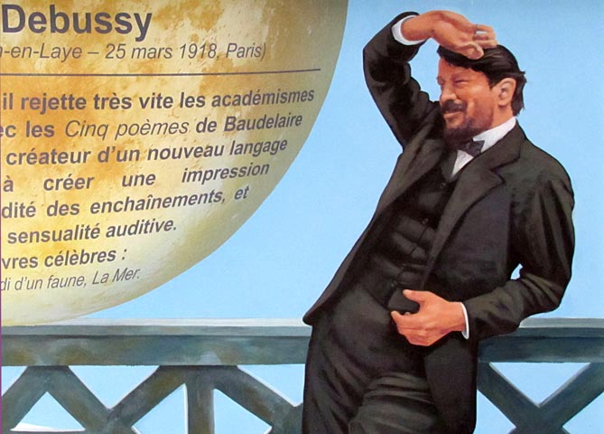D’abord influencé par Wagner, Claude Debussy s’affranchit très vite, rejette les académismes et affirme sa personnalité. Avec les Cinq poèmes de Baudelaire en 1890, il apparaît comme le créateur d’un nouveau langage musical. Imposant sa conception originale de l’harmonie et de la rythmique, s’appliquant à créer une impression d’improvisation par la fluidité des enchaînements, l’instabilité dans la continuité même, il invente une inédite sensualité auditive. Parmi ses œuvres célèbres : Prélude à l’après-midi d’un faune, La Mer, ou l’opéra Pelléas et Mélisande.