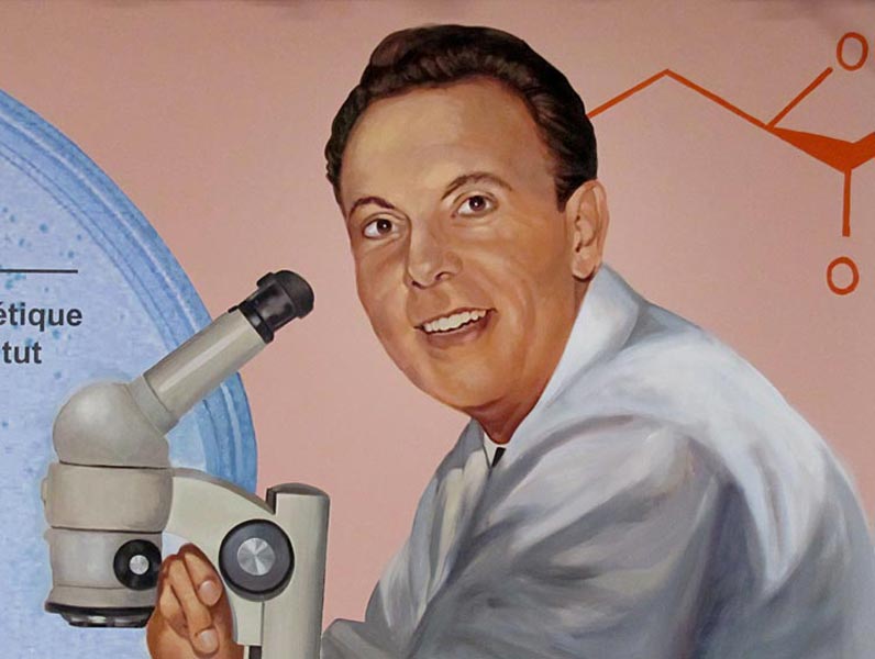 Interrompant momentanément ses études de médecine pour rejoindre les Forces Françaises Libres à Londres, le biochimiste François Jacob consacre ensuite ses recherches à la génétique des bactéries et des virus bactériens. Entré à l’Institut Pasteur en 1950, il prend la direction du service de génétique cellulaire dix ans plus tard. Il décrit notamment les conséquences biochimiques des mutations ponctuelles du génome bactérien. Introduisant les notions d’opéron et d’allostérie, il reçoit avec André Lwoff et Jacques Monod le prix Nobel de médecine en 1965.