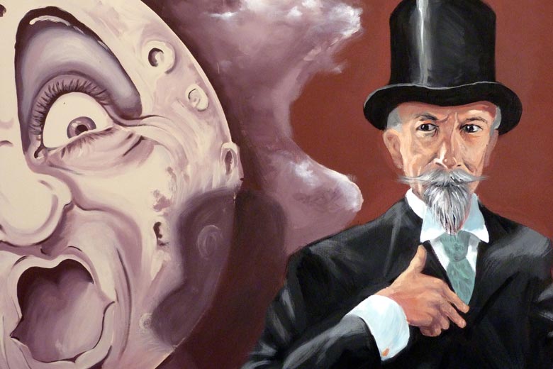 Georges Méliès débute comme prestidigitateur et rachète en 1888 le théâtre de magie Robert Houdin, dont il devient le directeur. Invité à la première projection publique des vues des frères Lumière le 28 décembre 1895, il entrevoit immédiatement les possibilités du cinématographe. Premier réalisateur de films de fiction, il crée aussi le premier studio de cinéma et réalise près de six cents « voyages à travers l’impossible », dont le célèbre Voyage dans la lune en 1902. Poursuivi par les créanciers, le père des effets spéciaux finit sa carrière comme vendeur de jouets à la gare Montparnasse.