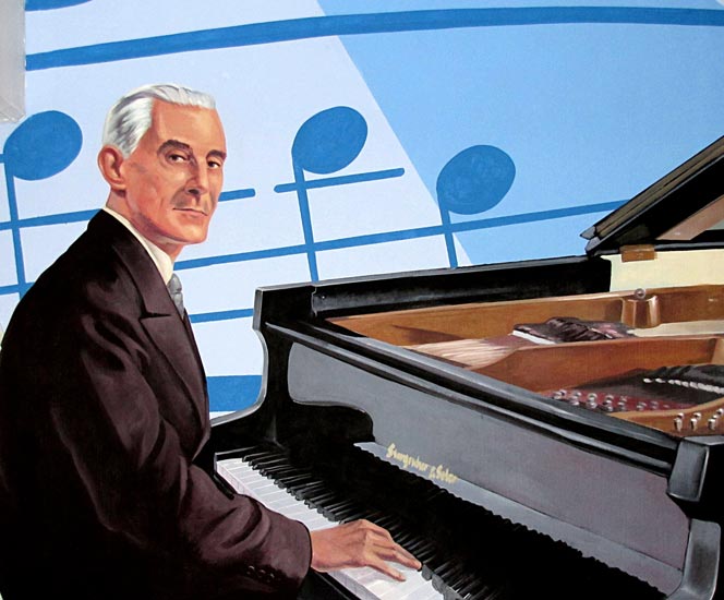 Maurice Ravel ouvre la voie de la musique dite « moderne ». Son œuvre, fruit d’influences multiples allant de Couperin à Rameau et des rythmes du jazz aux musiques espagnoles, se caractérise par la subtilité de la ligne mélodique, le goût pour l’exotisme, la féérie et le fantastique. Parmi ses œuvres les plus connues : le Boléro, la Habanera pour deux pianos, le Concerto pour la main gauche. Ancien habitant de Levallois-Perret, il est enterré au cimetière Gustave Eiffel et plusieurs lieux portent son nom dans la ville (conservatoire, auditorium, école publique).