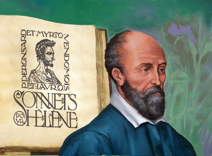 Surnommé le « Prince des poètes », adepte de l’épicurisme, Pierre de Ronsard est une figure majeure de la littérature poétique de la Renaissance. S’inspirant des auteurs antiques, il compose une œuvre vaste faite d’Hymnes au ton épique et de Discours où se déploie son génie oratoire et satirique en faveur de Charles IX et de la foi catholique. Ce membre de la Pléiade est surtout connu pour ses odes (Mignonne, allons voir si la rose) et ses sonnets (Amours).
