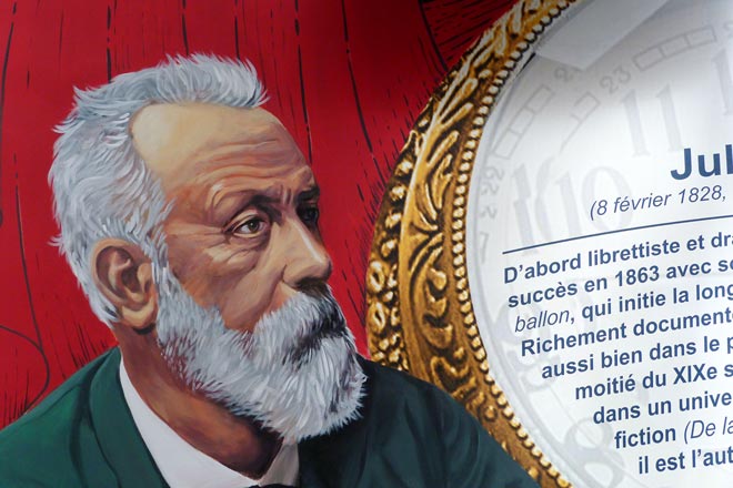 D’abord librettiste et dramaturge, Jules Verne connaît un vif succès en 1863 avec son premier roman, Cinq semaines en ballon, qui initie la longue série des Voyages extraordinaires. Richement documentés, ses romans relatent des aventures aussi bien dans le présent technologique de la deuxième moitié du XIXe siècle (Le Tour du monde en 80 jours) que dans un univers imaginaire où s’impose la science-fiction (De la Terre à la Lune). Après Agatha Christie, il est l’auteur le plus traduit en langue étrangère.