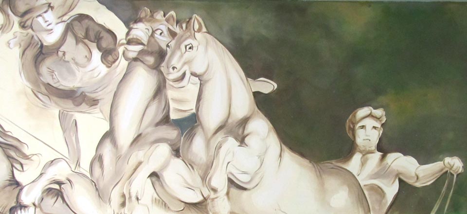 Formé par Simon Vouet puis par un long voyage à Rome, le peintre et décorateur Charles Le Brun réalise des scènes religieuses et des commandes officielles et participe activement à la constitution de l’Académie royale de peinture et de sculpture. Premier peintre du roi Louis XIV en 1662, puis directeur de la manufacture des Gobelins et du mobilier royal, il reste célèbre pour sa décoration fastueuse du château de Versailles, dans l’escalier des Ambassadeurs, la galerie des Glaces et le salon de la Guerre.